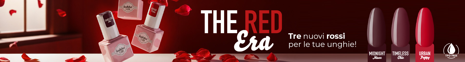 Nuova collezione di Lakkè 3 Step di 3 colori semipermanenti ad alta pigmentazione, una collezione di rossi pensata per la sera: intensa, sofisticata, irresistibilmente elegante. Tonalità profonde e luminose si incontrano per vestire le mani di fascino e carattere, tra riflessi vellutati e accenti decisi.