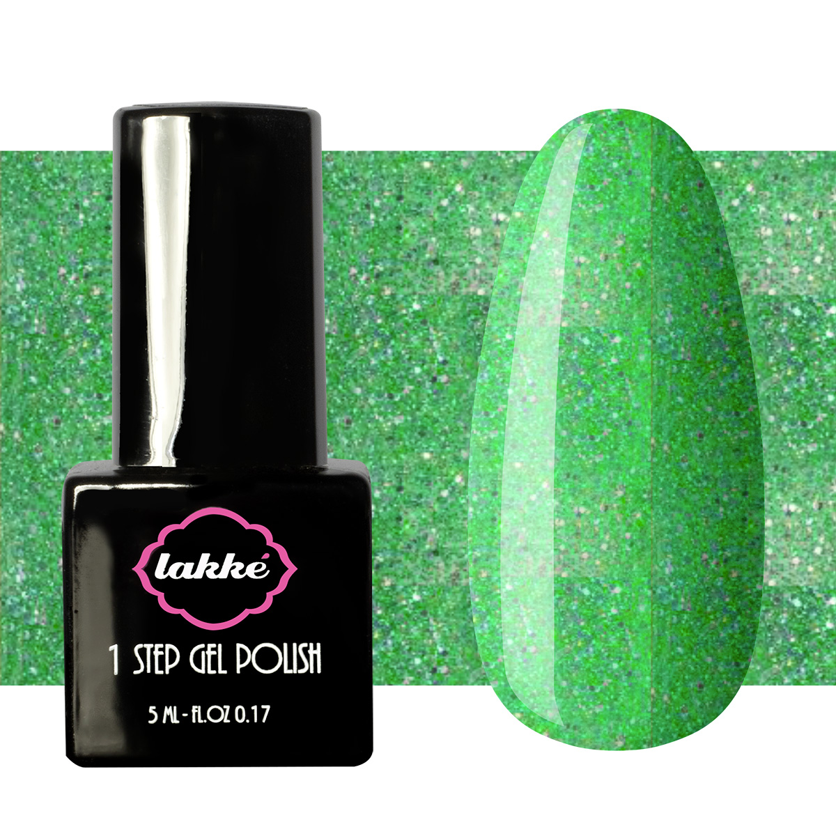 Lakké Swinger è uno smalto semipermanente 1 step di color verde mela intenso. Impreziosito da glitter dorati che doneranno extra luminosità!