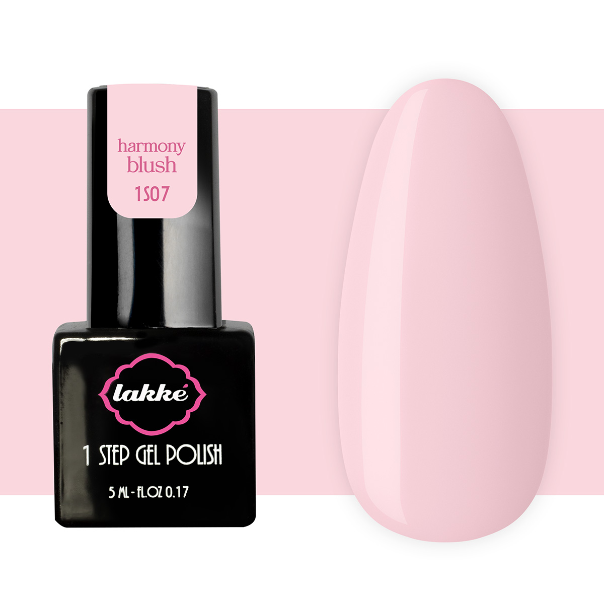 Lakké 1 Step Harmony Blush è uno smalto semipermanente rosa cipria chiaro.