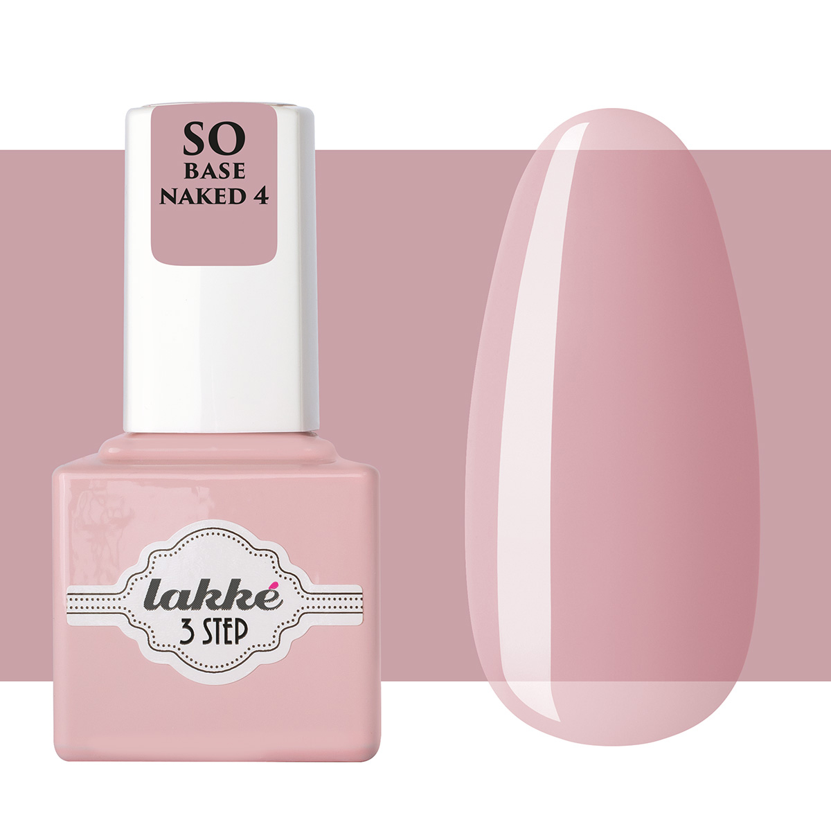 SO BASE NAKED 4 So Base Naked 4 è una base semipermanente color rosa nude semitrasparente che garantisce un’ottima aderenza. Può essere usata come base per i colori semipermanenti 3 Step Lakkè. NUOVA FORMULA GEL SEMIPERMANENTE Una nuova formula Gel Semipermanente, di facile stesura, ad effetto riempitivo ed uniformante dell’unghia naturale rimanendo comunque sottile, con una durata di oltre 22 giorni.