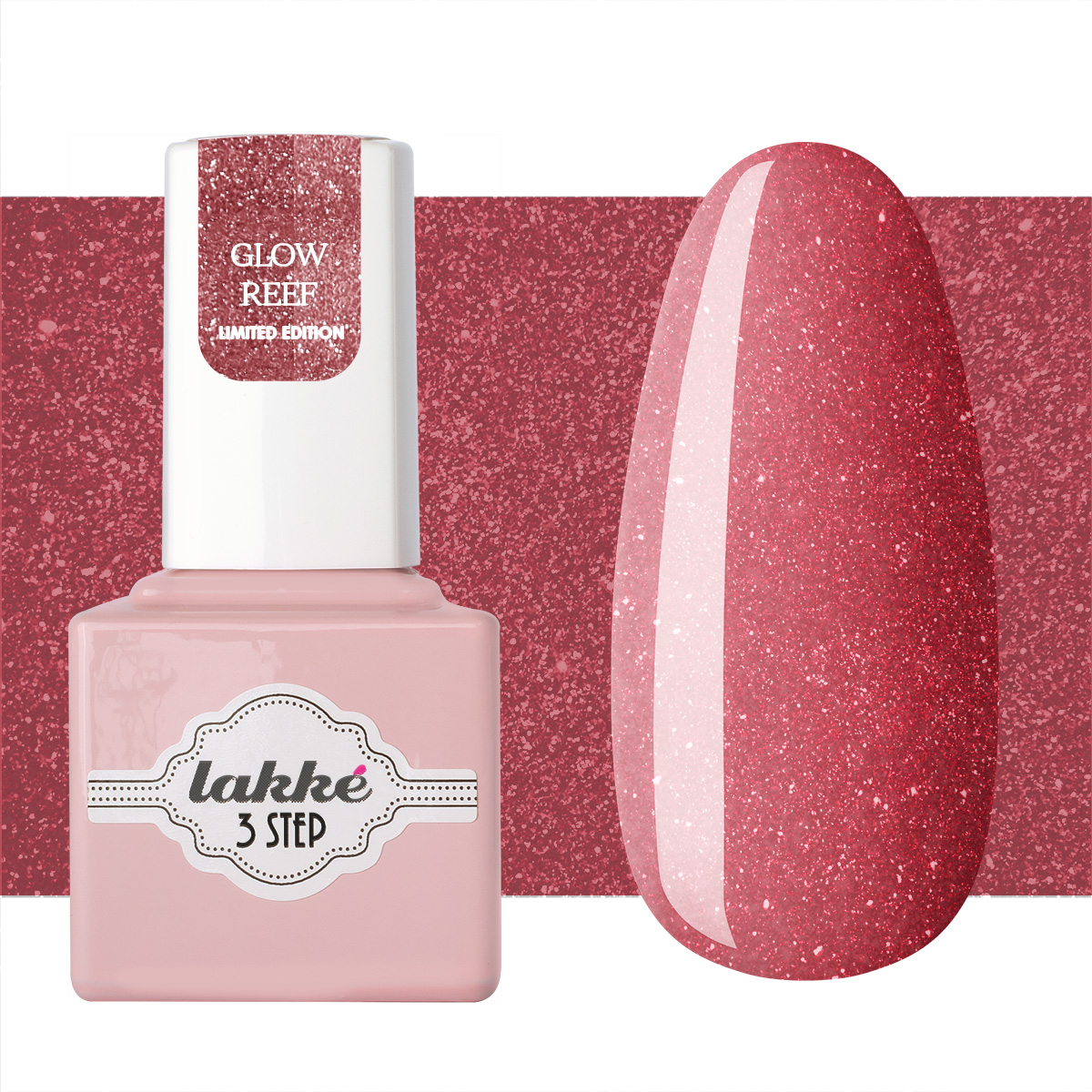 Lakké 3 Step “Glow Reef” è un gel semipermanente glitterato color corallo con effetto disco flash. È ricchissimo di micro glitter olografici che creano un effetto luminosissimo alla luce diretta. Garantisce una perfetta copertura già dalla prima stesura di colore.