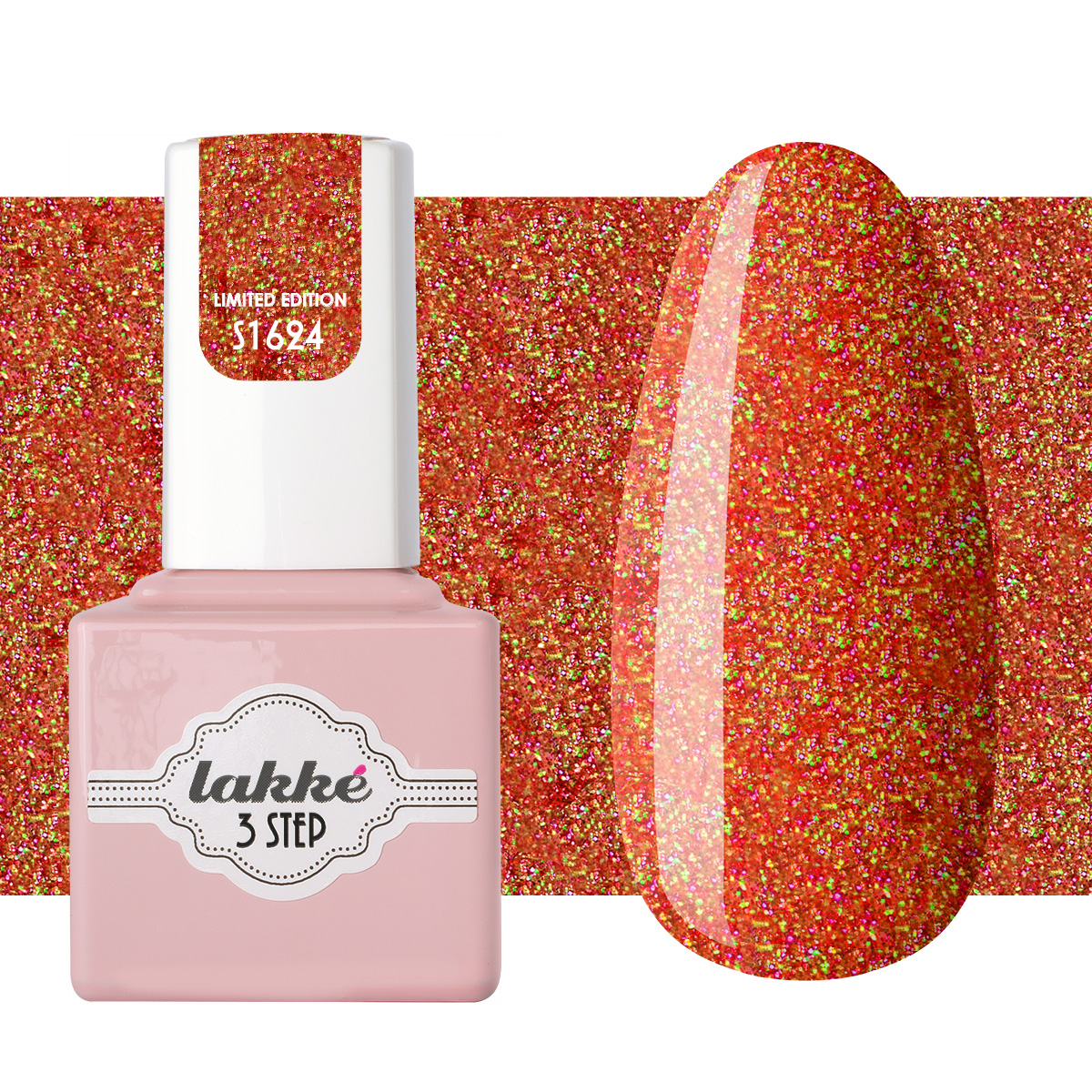 Lakké 3 Step Jam è un gel semipermanente Limited Edition glitterato color rosso intenso. Contiene microglitter color fuxia, oro e verdi, piccoli e molto brillanti, risultano ancora più luminosi alla luce diretta, regalando un meraviglioso effetto scintillante!