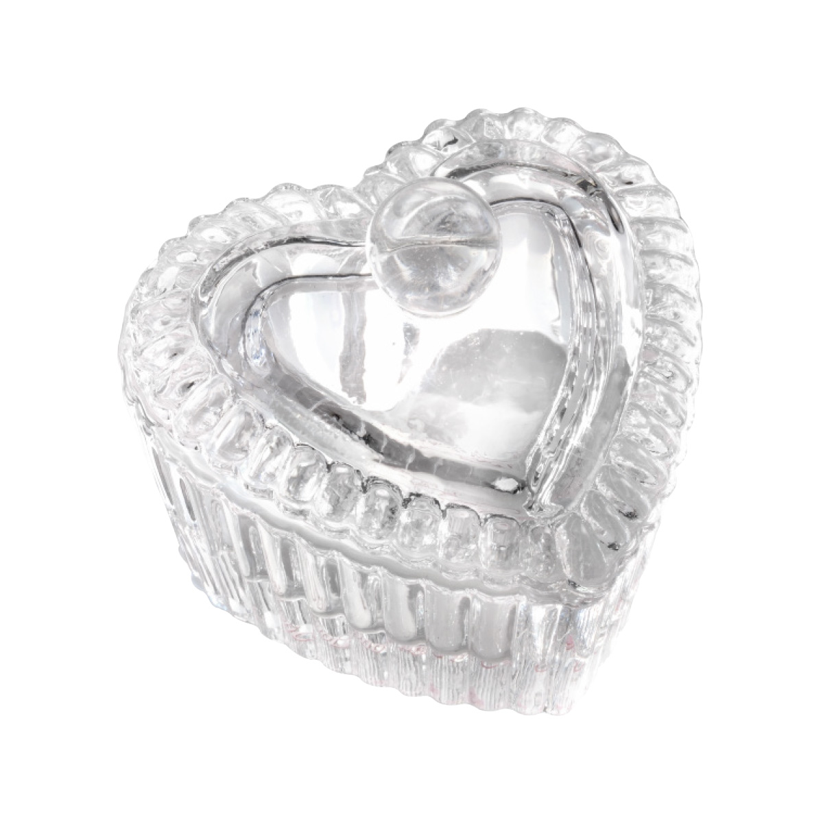 Contenitore in vetro a forma di cuore, ideale per le polveri.