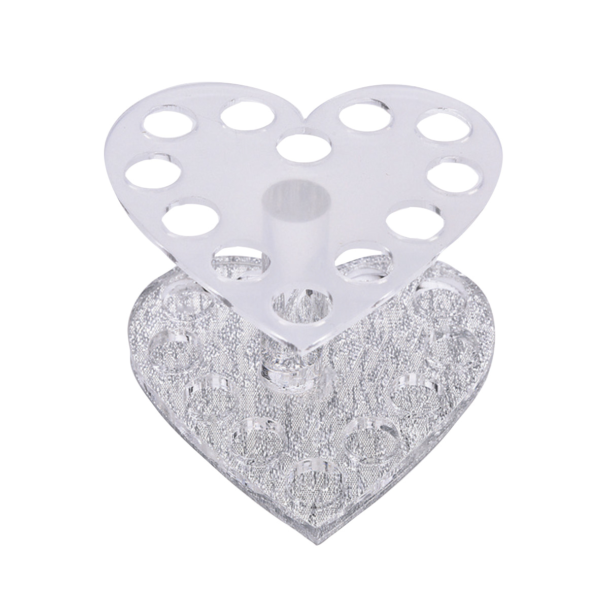 Un bellissimo porta pennelli in plexiglass a forma di cuore.