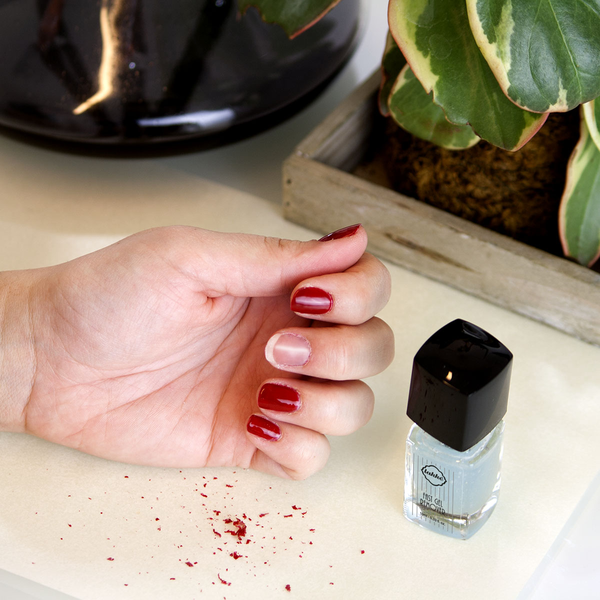 Formulazione innovativa che consente di eliminare il semipermanente in maniera facile e veloce, senza dover utilizzare frese, o altre tecniche invasive.