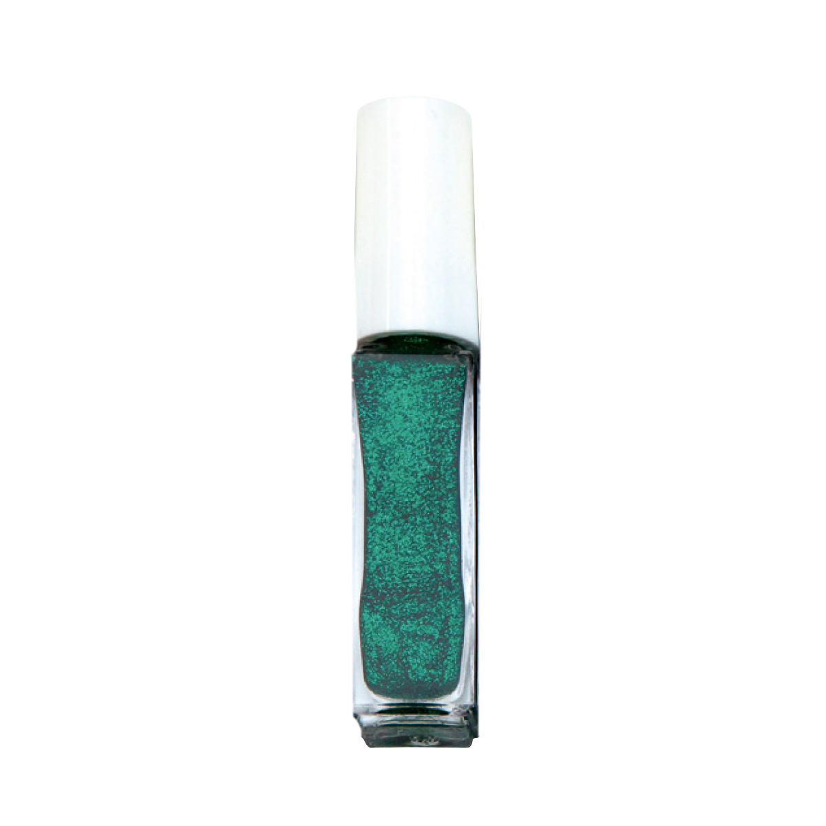 Acquerello per decorazioni a base di smalto con pennello sottile di colore verde glitter.