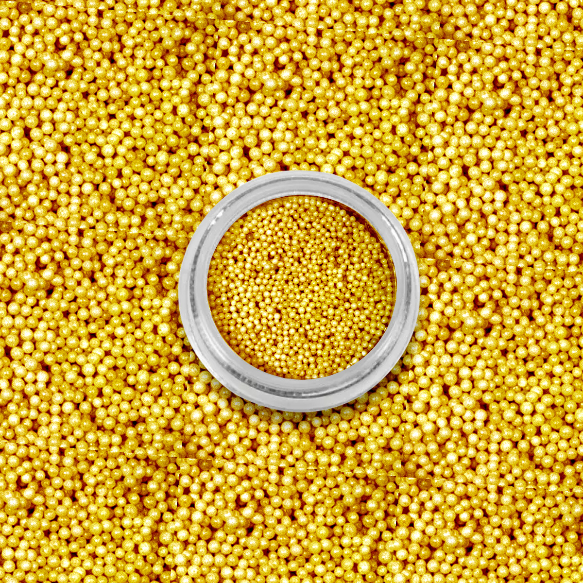 Micro Perle per unghie di colore dorato, ideali per realizzare nail art ricercate ed eleganti.