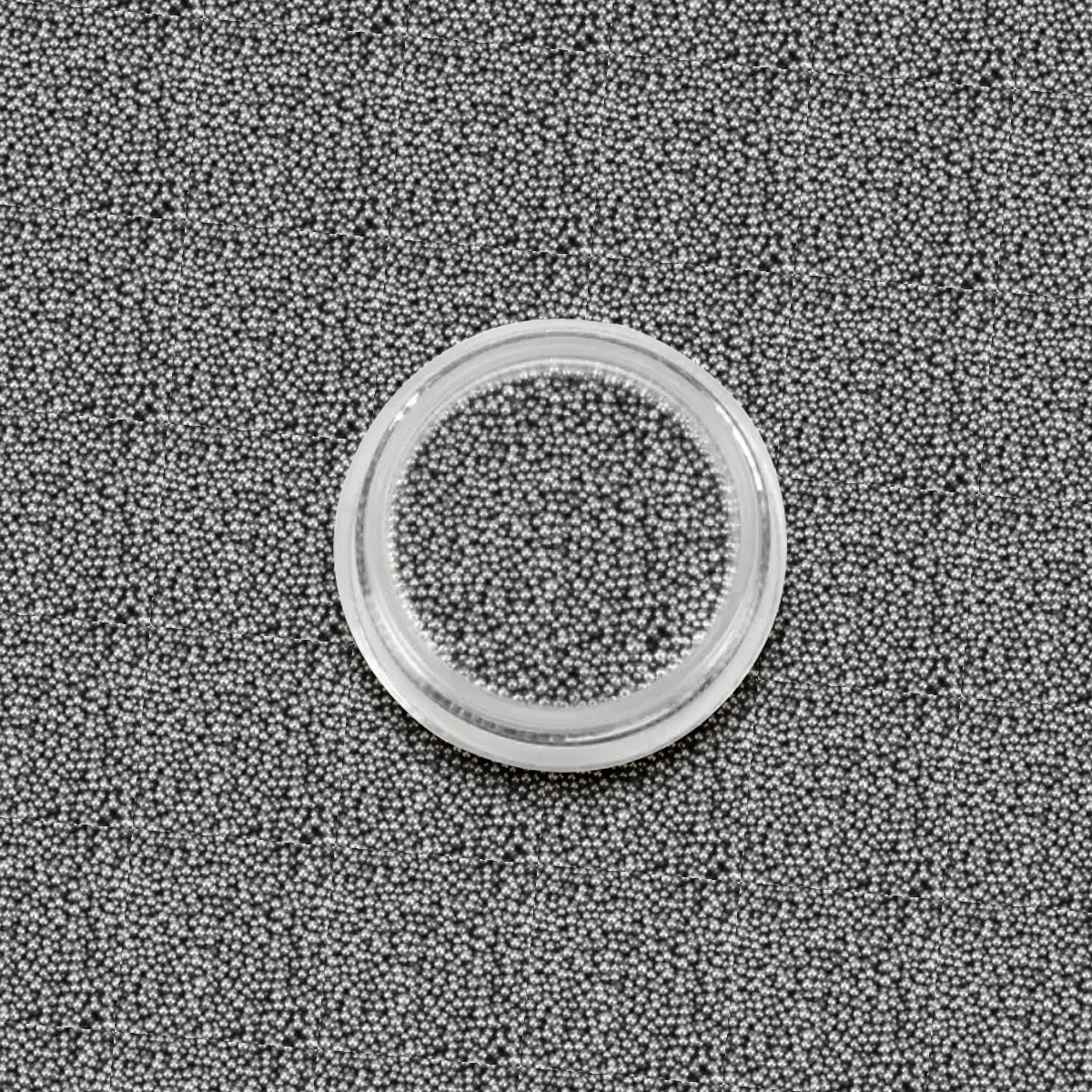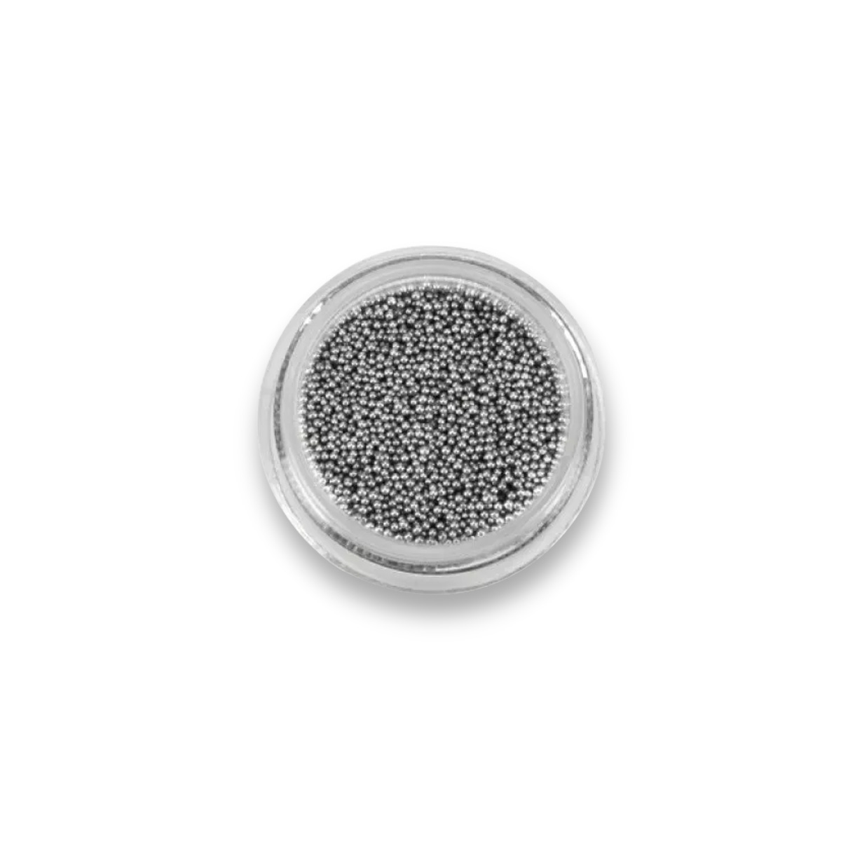 Micro Perle per unghie di colore argento, ideali per realizzare nail art ricercate ed eleganti.