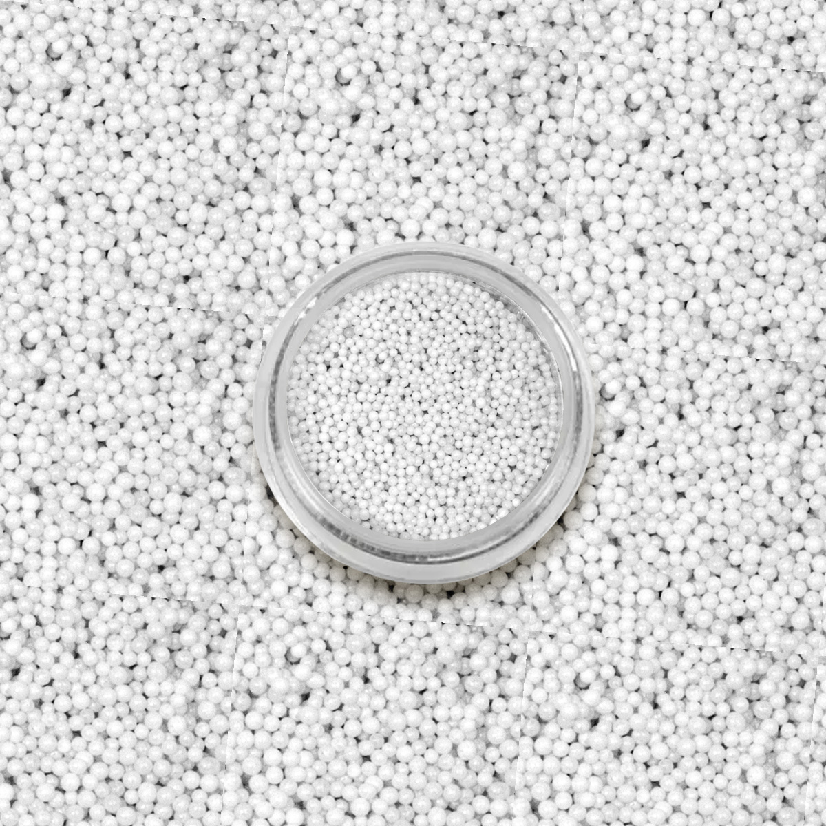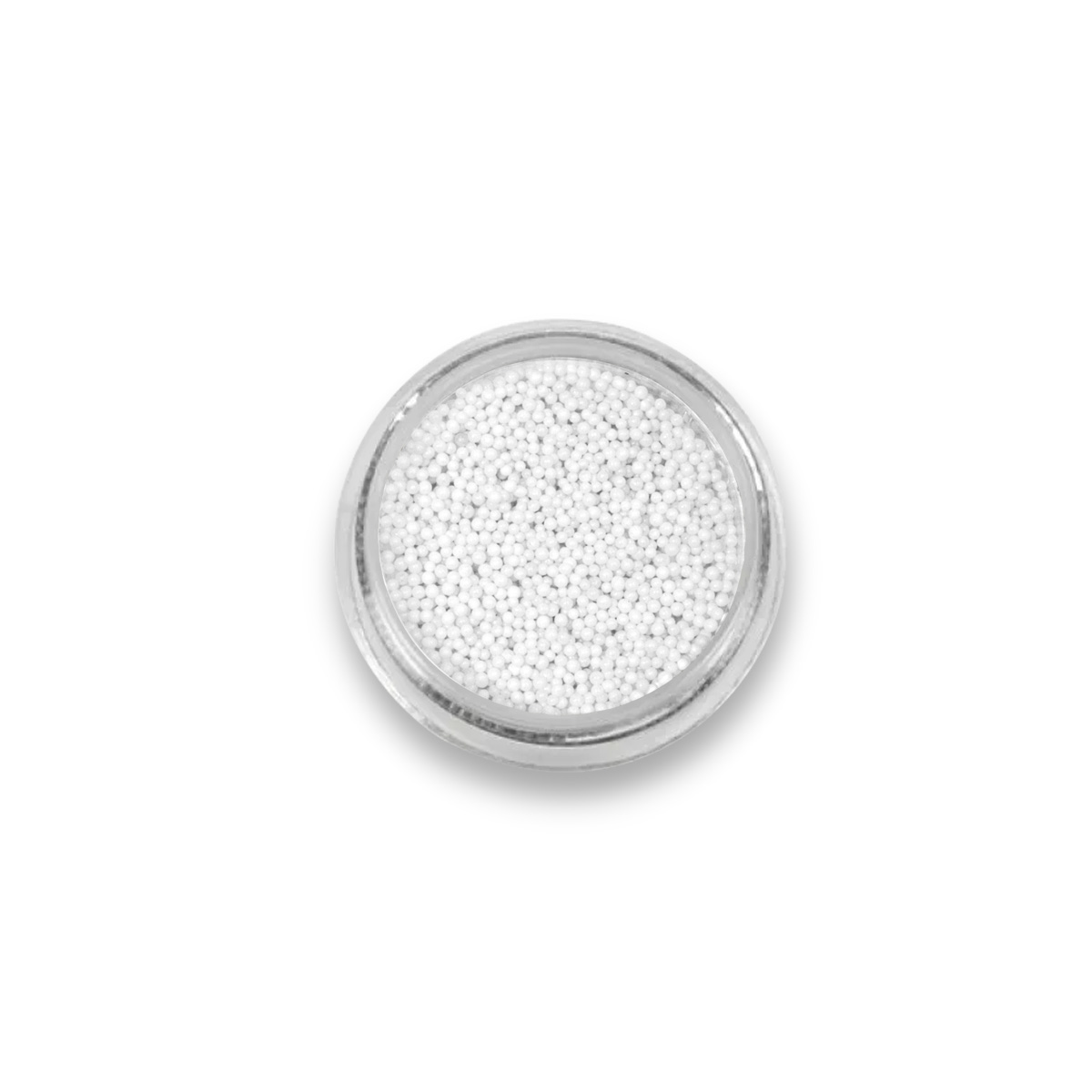 Micro Perle per unghie di colore bianco, ideali per realizzare nail art ricercate ed eleganti.