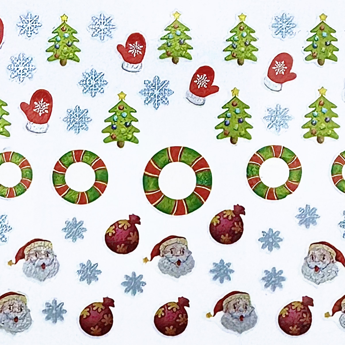 Adesivi pensati per rendere le tue nail art ancora più accattivanti! Sottili e semplicissimi da applicare. Inumidire con un nail pad, sollevare con una pinzetta e applicare sull’unghia o sul colore, infine sigillare con il Top in lampada. Fantasia: elementi natalizi