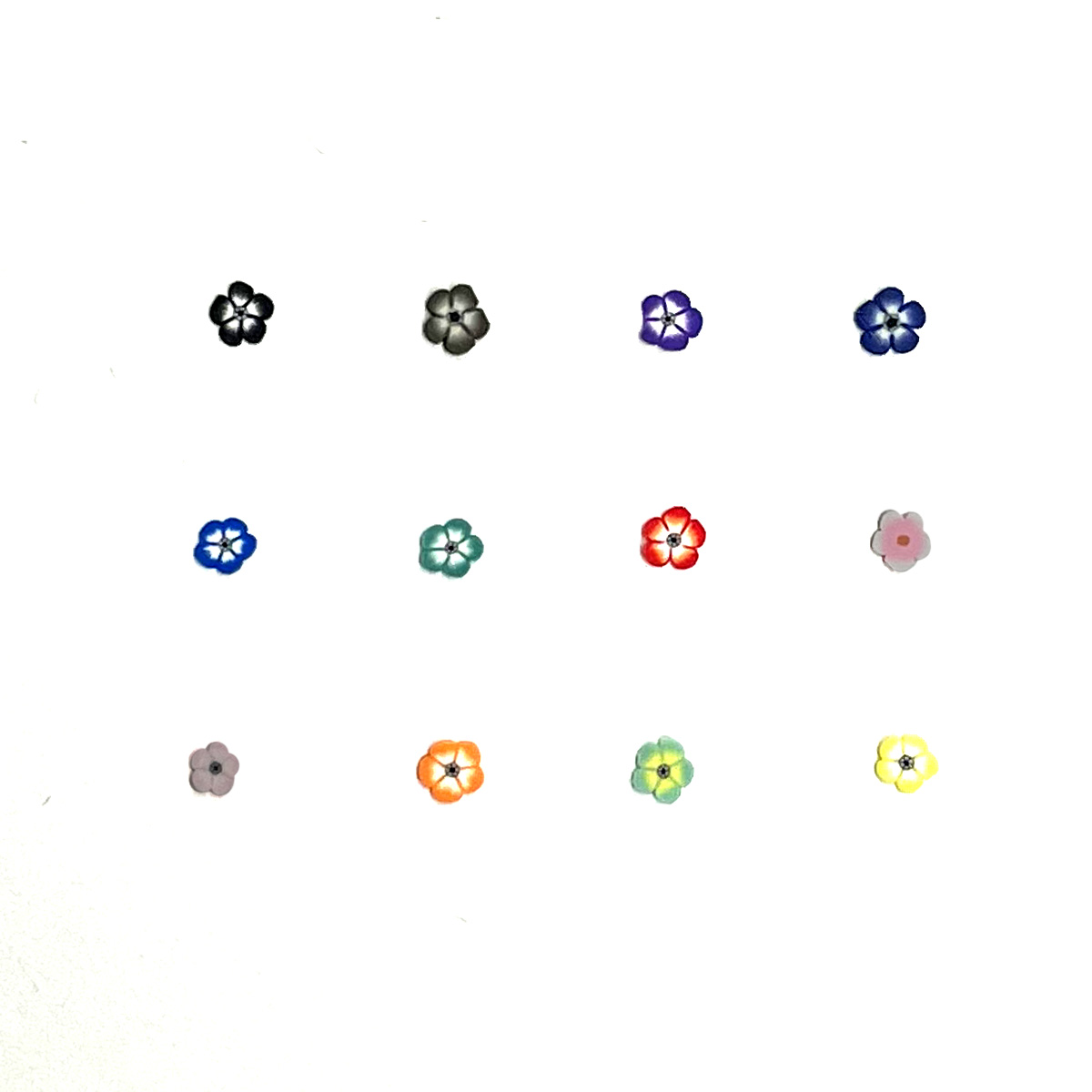 La confezione contiene 12 tipologie di decori a tema fiori.