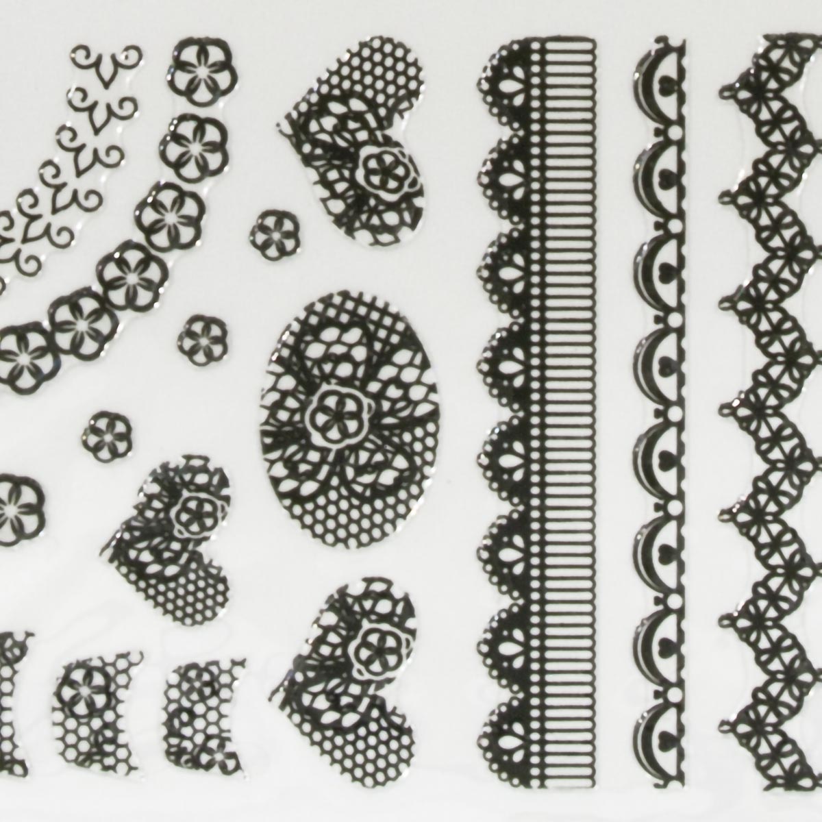 Adesivi per nail art pensati per rendere le tue nail art ancora più accattivanti! Sottili e semplicissimi da applicare. Inumidire con un nail pad, sollevare con una pinzetta e applicare sull’unghia o sul colore, infine sigillare con il Top in lampada. Fantasia: pizzo nero.